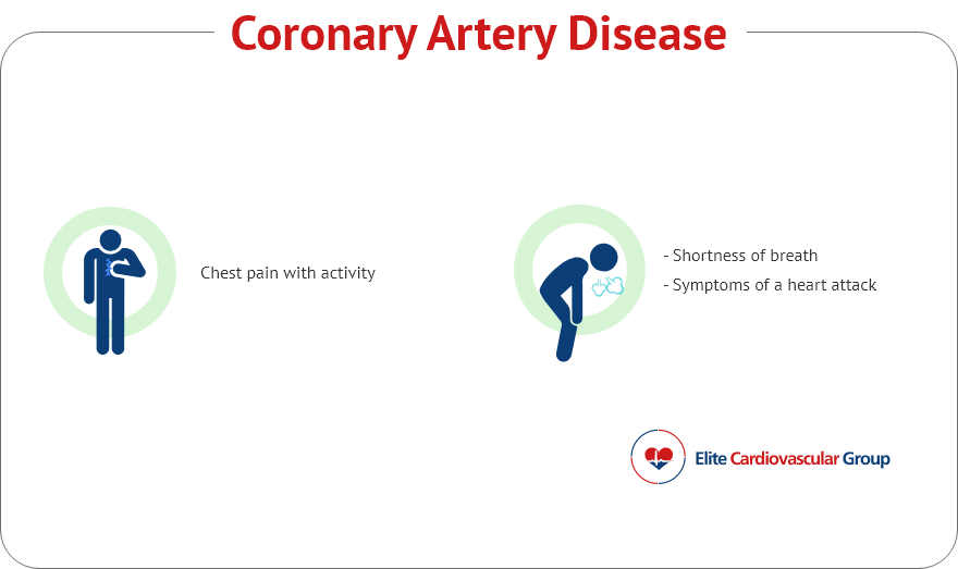 When a large part of a coronary artery is filled with atherosclerotic plaque, the blood flow can be decreased significantly. This decreased blood flow can cause a type of chest pain called angina and other symptoms.